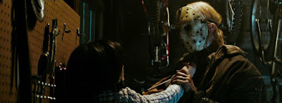 The film paced itself decently enough that we get to have a fairly bloody murder in between some of the attempted character and/or plot development, which was a fine approach thing seeing not a lot of these teenagers are that likable. A whole good deal of them are your token stereotypes, beaming with the same rowdy energy as their late 80s/early 90s counterparts, albeit more risque with the plentiful near-softcore sex scenes and copious amount of topless nudity. Drugs are passed, juvenile jokes were cracked (hit or miss, unfortunately), dumb decisions are still made (would you really leave your friends to help a stranger you just met this morning?), it wasn't too long before we are rooting for Jason to come out and put his machete to good use and put it to good use he did! I will admit that I did took me some time getting used to another fleshy Jason since I grew up with post-The Final Chapter Friday the 13th movies. I was kinda anxious to see if he will remain as invulnerable as his zombified take and it is kinda cool to see that hardly anything changed for the only man to matter in this movie. Jason is still Jason. Hockey mask, uber-sharp machete, 7 foot stature and all. He is still the silent mass of muscle and hate that we all knew and love, though he did have this one kill that felt out of place in a Friday the 13th flick (those who have seen this flick will know what the roast I am talking about) but this is a minor gripe on my end and so long as the results still show blood red, I'm all for it.